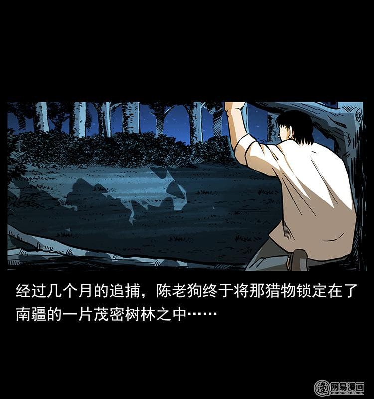 幽冥诡匠第167话之《陈老狗下南疆》咱们借着陈老狗的口,讲一讲当年他下南疆时的奇异经历及第二次边境法师大战的一些故事,话说年轻时的陈老狗因为一次意外受了伤,多亏佟家老掌柜出手,用秘药把他从鬼门关拉了回来,为了报恩,这オ在佟家接了一个十分困难的龙骨,经过几个月的追捕,陈老狗终于将那猎物锁定在了南疆的一片茂密树林之中,追着猎物跑了两天的他,发现那猎物终于停了下来这才向身边的一棵树上招呼了一声……